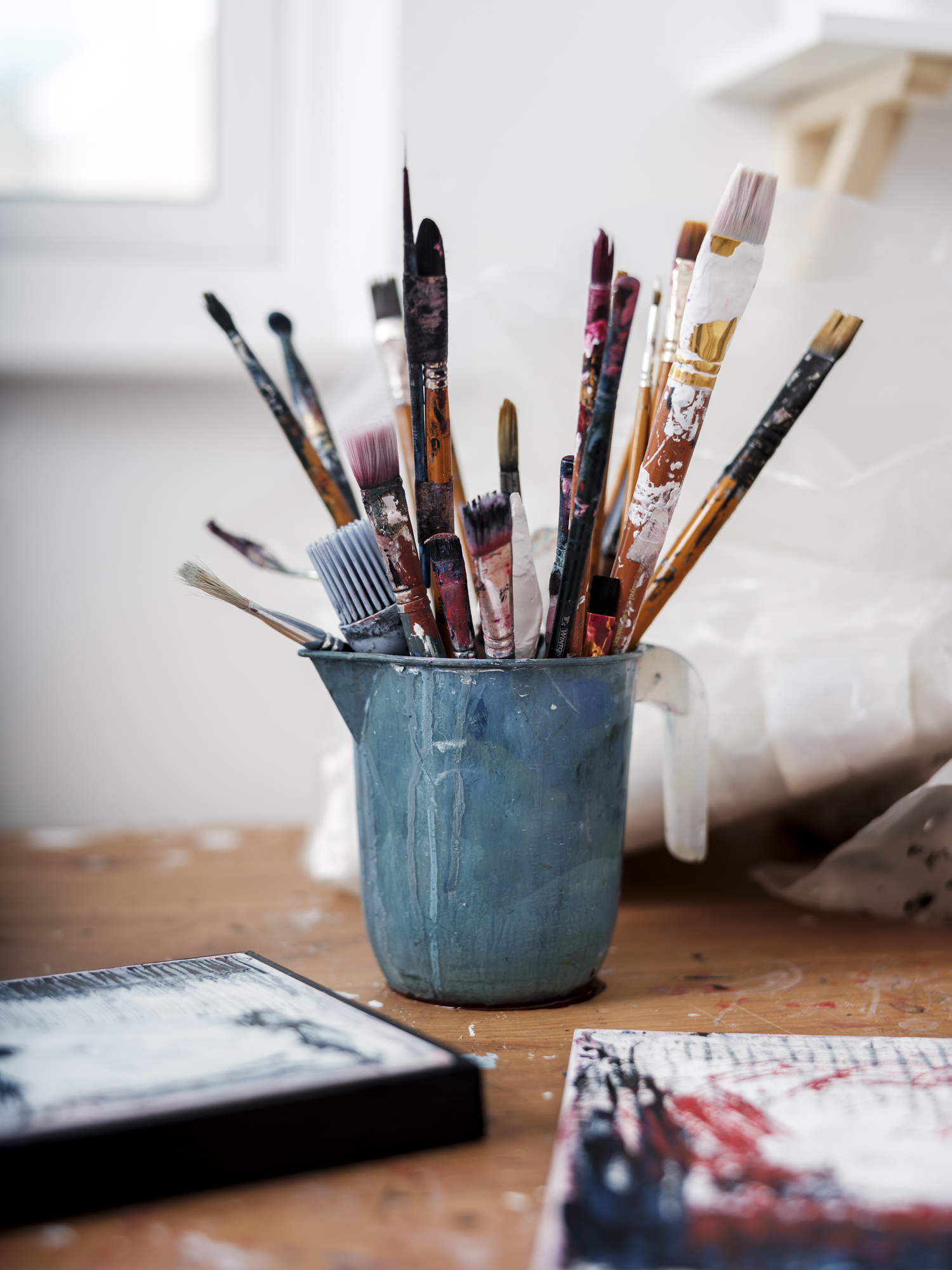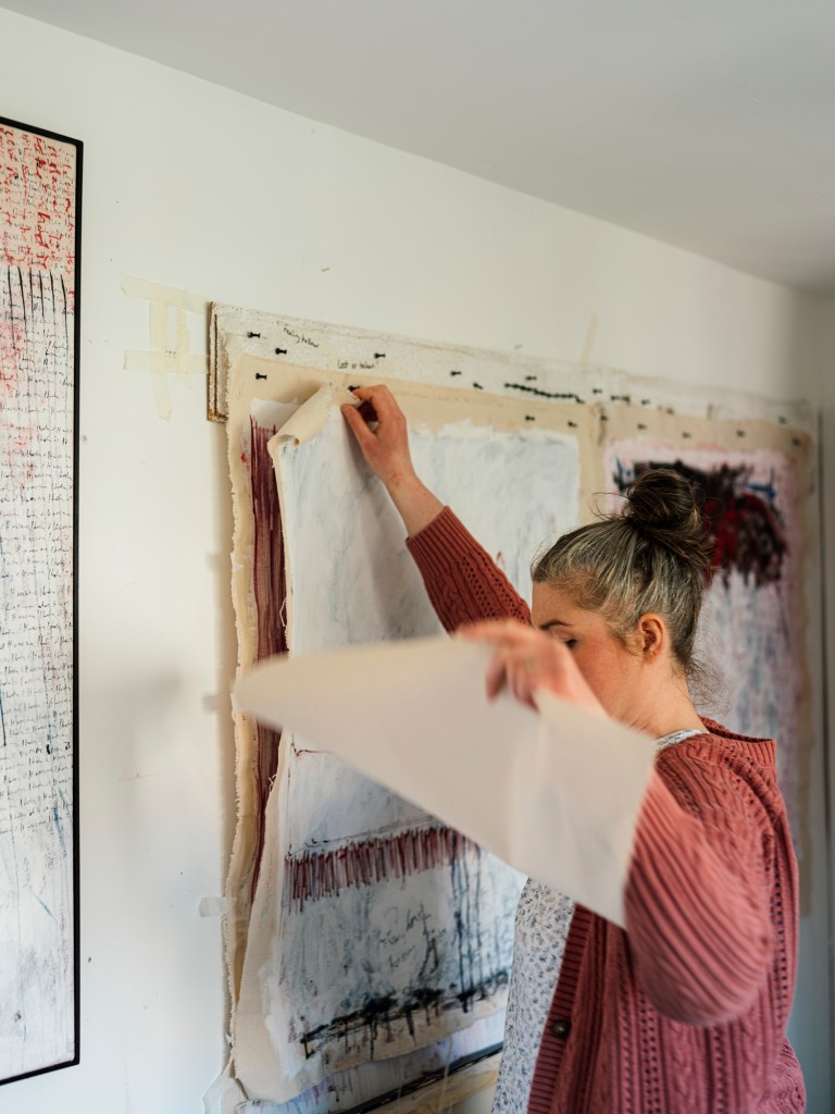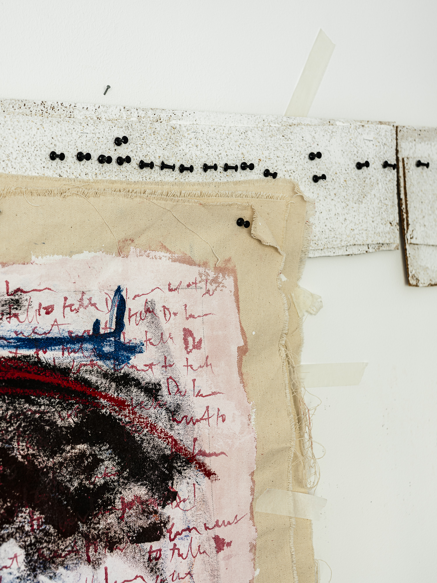 I work in painting and drawing with a mix of figuration and abstract mark making to speak of power, control, love and identity.